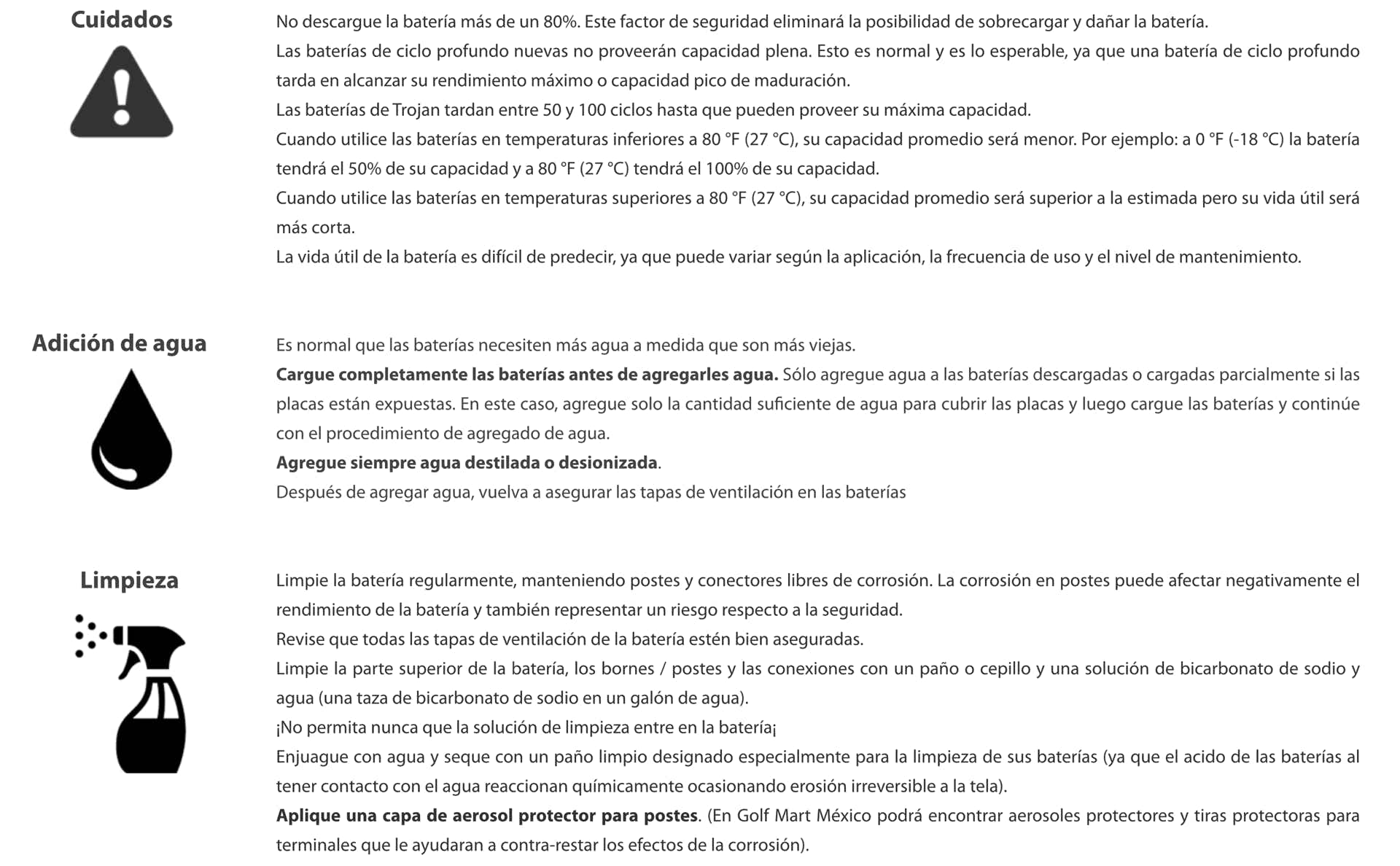 Las baterías de tu carrito de golf con el tiempo y el uso requieren mantenimiento, sin ello puedes provocar complicaciones que pueden dañar las baterías y componentes eléctricos de tu carrito.